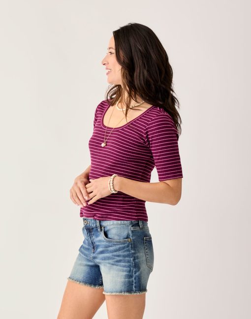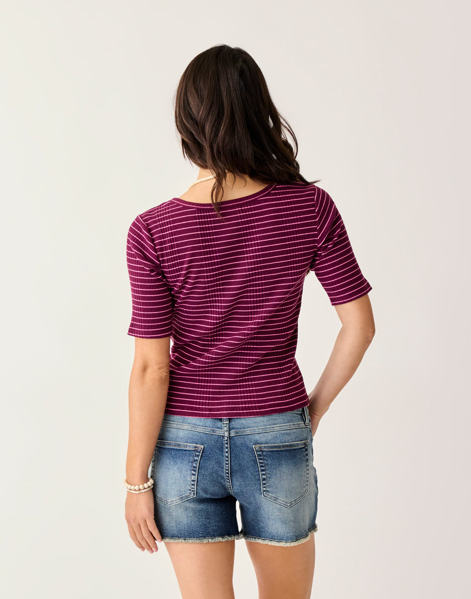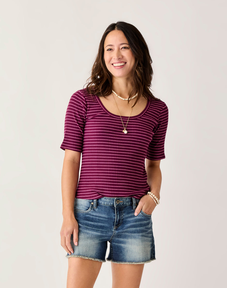 The Asher Rib Top is a simple pleasure that aims to please. Her half sleeve and perfect weight make the perfect layering piece. Which is perfect.