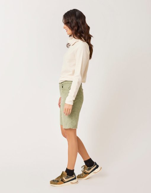 Our best-selling Oahu short now in an ultra flattering high rise. Slim fit (think cut-off-skinny-jeans style) for a casual yet put-together look. Made with organic cotton corduroy and just enough stretch to keep you comfy all day long — wherever the warm wind blows you.