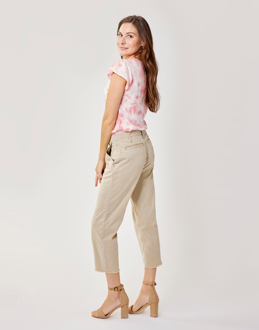 A best-seller in the making, this every day pant’s perky disposition and cute cut heed the call no matter what your day has in store. Pigment overdye with heavy washing frayed raw edge hem set them apart from sea of sameness.