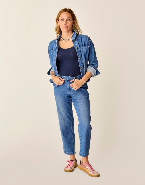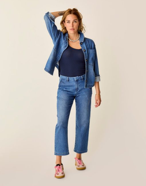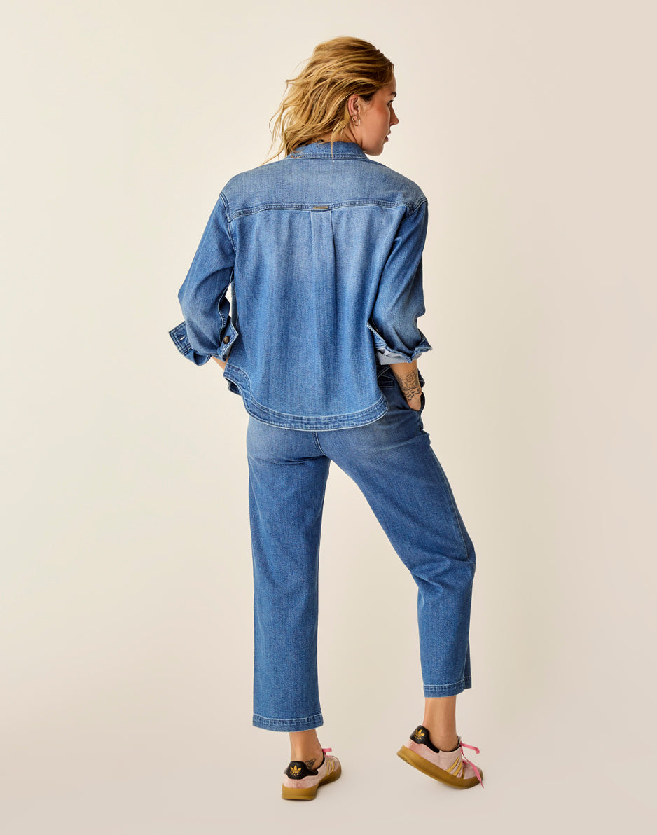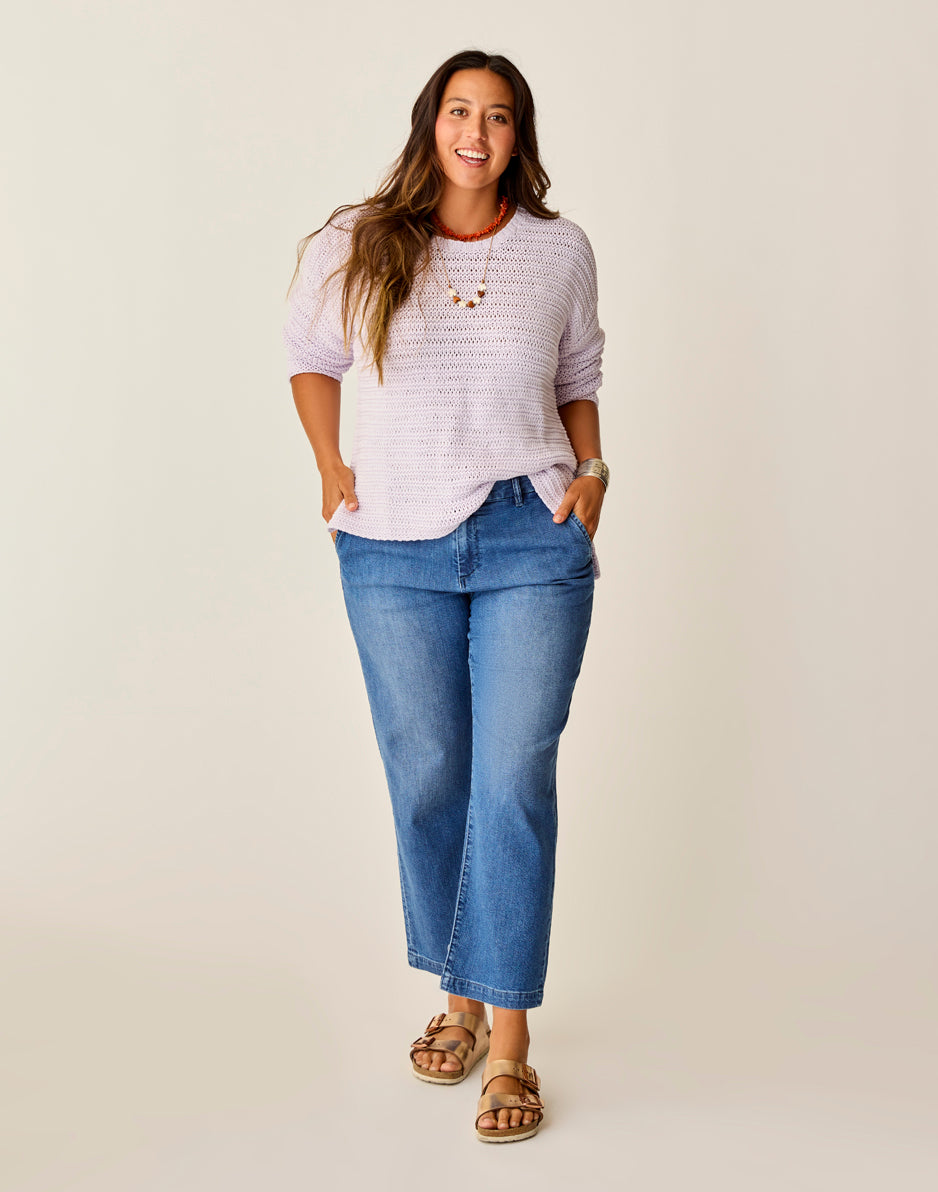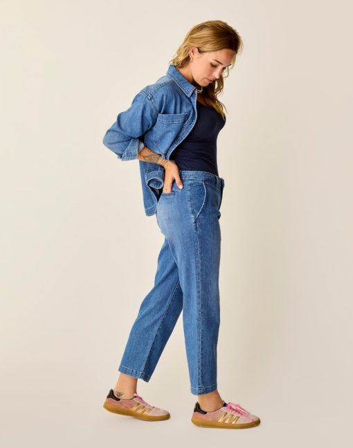 Like her leg the Spencer is a straight shooter, and as dependable as a rodeo clown at the running of the bulls. Savor her classic fit, chino styling, and finished hem. Then wash it all down with her lightweight denim demeanor, and back welt pockets with light distressing.