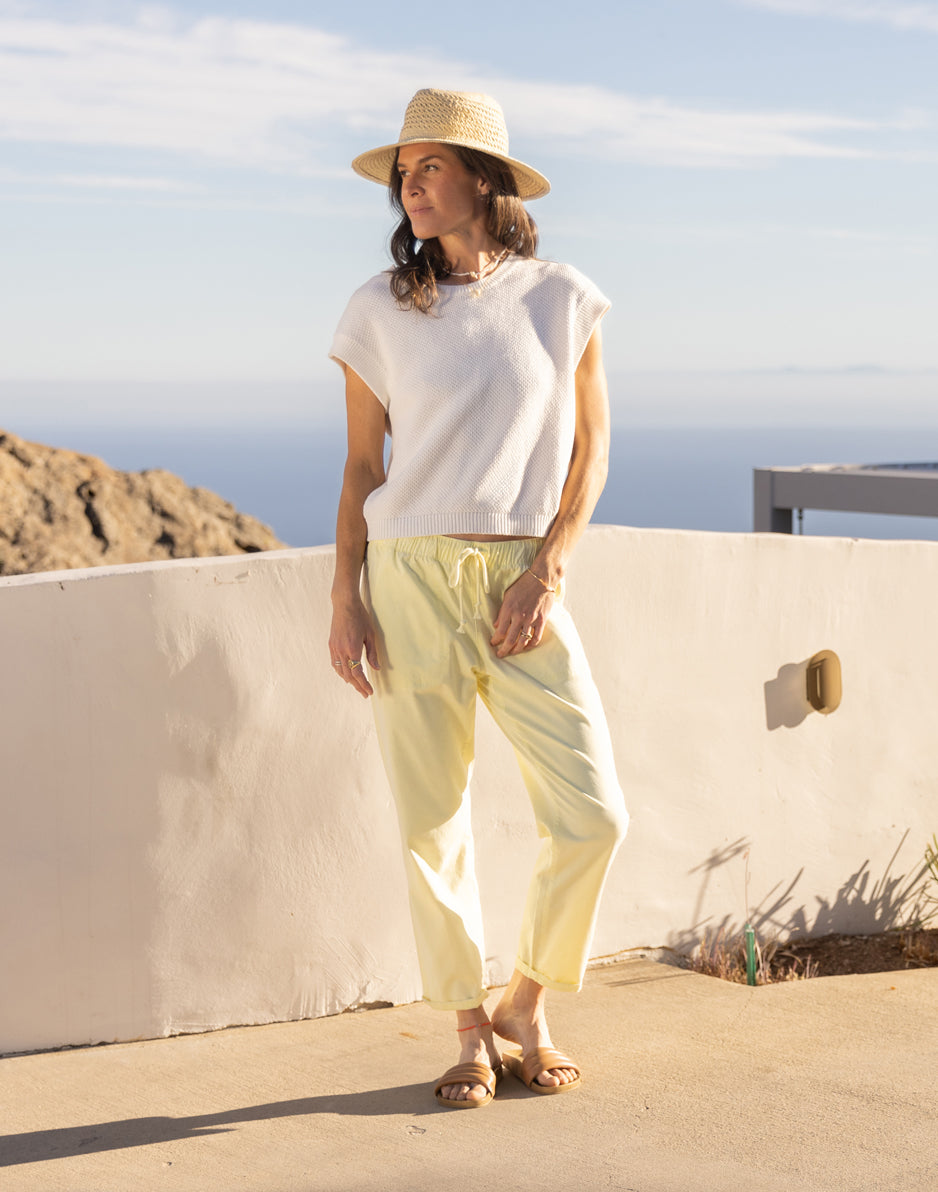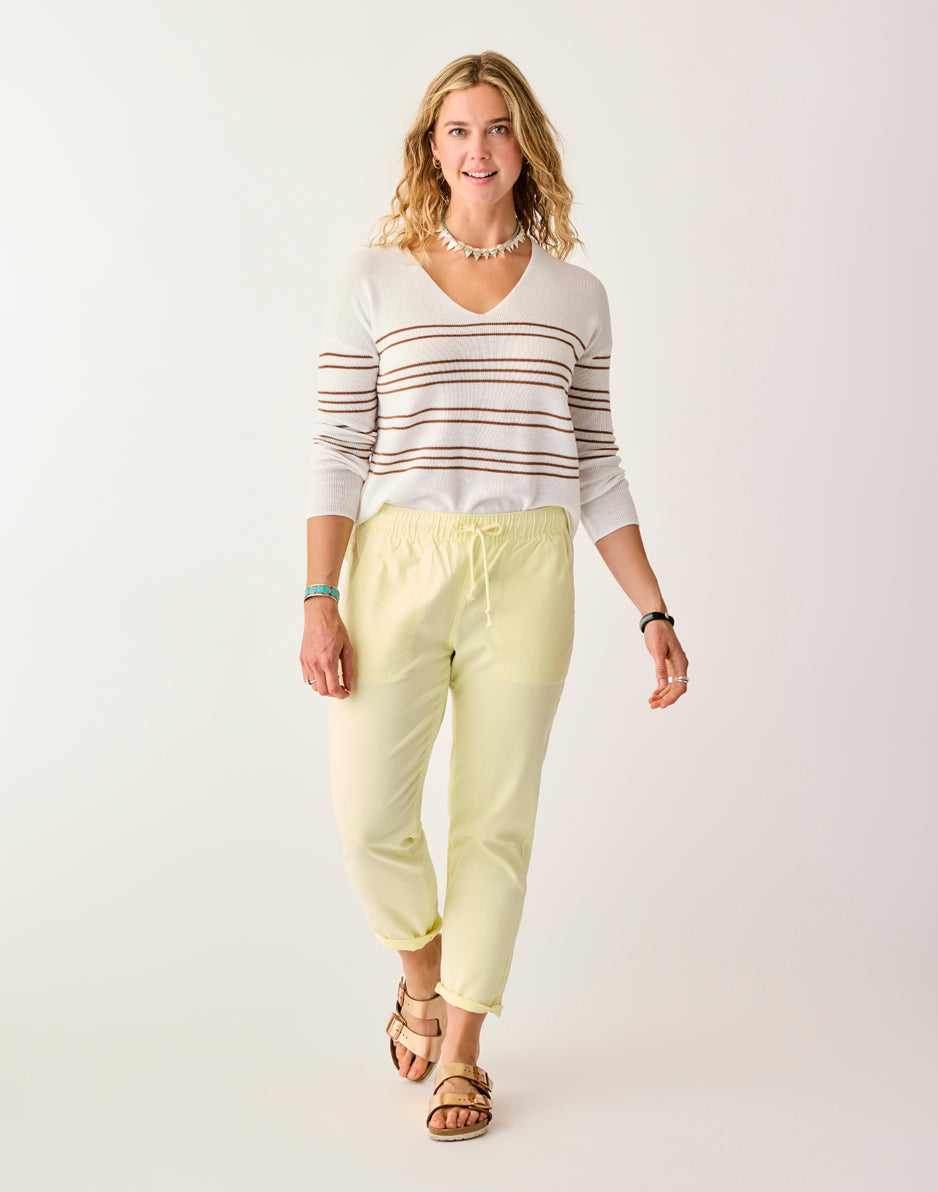 Put a bounce in your step with the casual comfort and competence of the Zoe. This easy pull-on pant with elastic waistband with draw cord is ready for whatever your day demands.