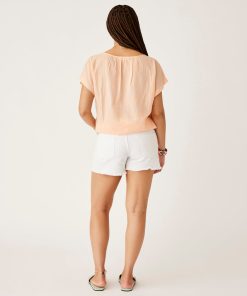 These stretchy denim shorts have the signature cut-off fringe hem, but also have extra styling in the beach-inspired embroidery. Your go-to cut-offs just got a makeover.