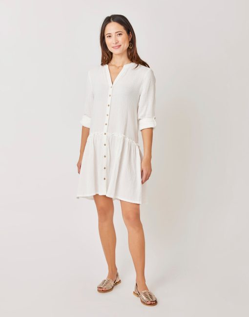 The casual charm of a collarless button down paired with a flouncy tiered skirt and playful ruffle detail. The Blair is pretty, in a totally effortless way. One of our favorites for throwing on after a swim.