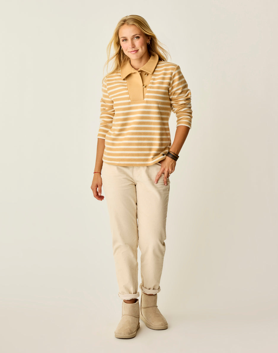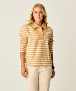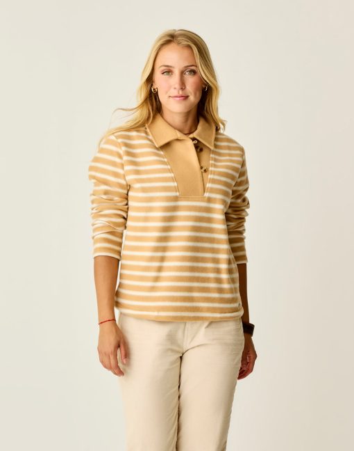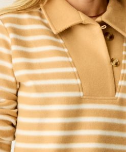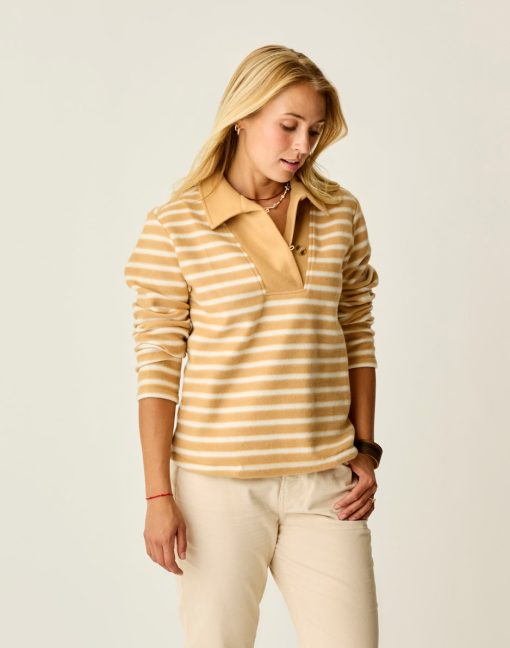 Carve Designs Women’s Tops Clara Fleece Pullover | Camel Even Stripe