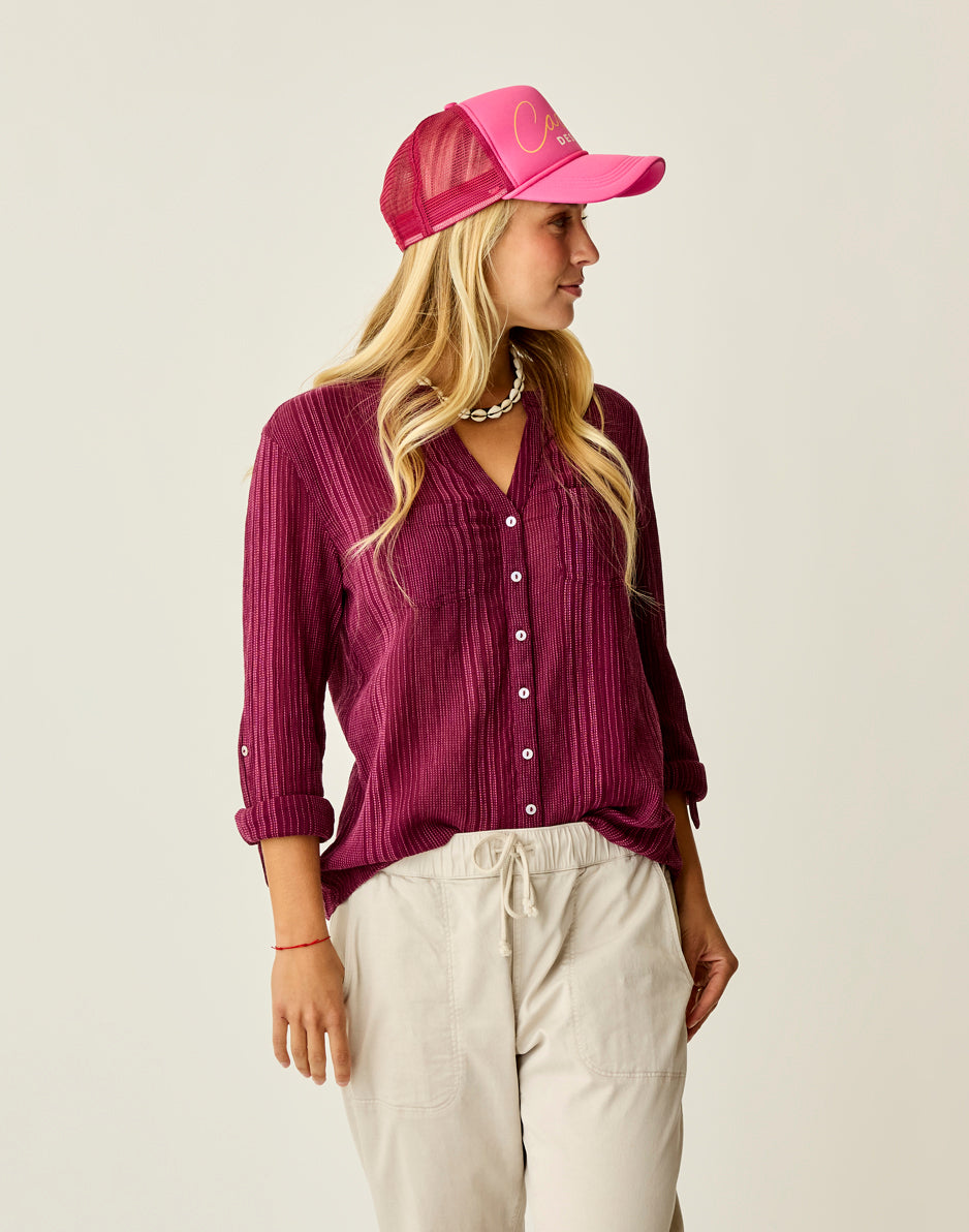 Our favorite Coastal Gauze fabric in a full button tunic style. This top is so versatile it’s a must have for all. Layer it over a tank or under a vest. Wear tied at the waist or wear it long and untucked.