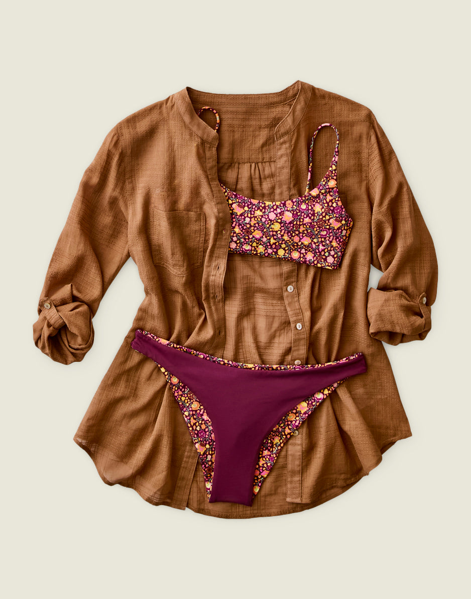 The beach-inspired Dylan Textured Tunic is one of the most versatile pieces that your closet is begging you for. Chest pockets, a button front, and the textured gauze fabric make it flow from the beach to your around-the-town attire. Layer this top up.