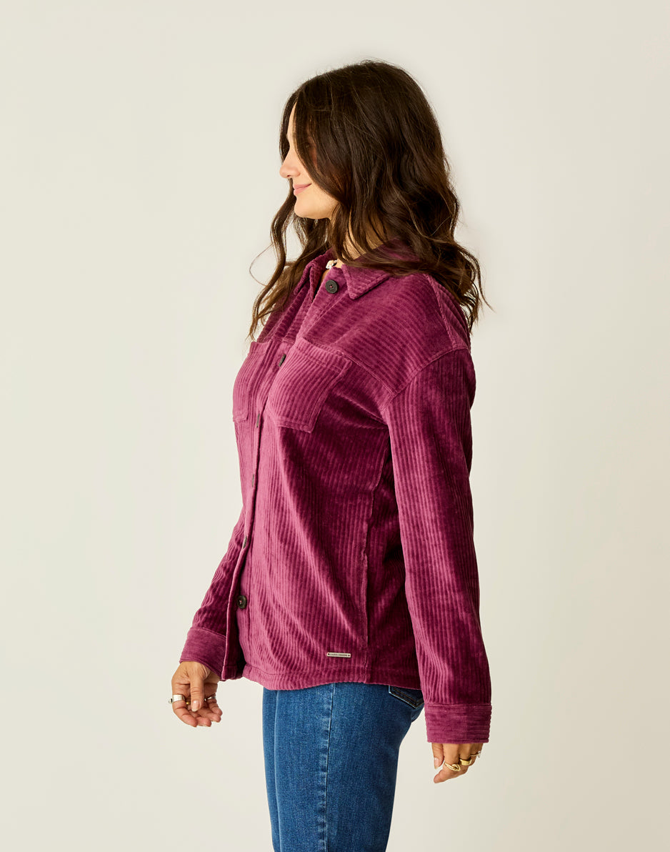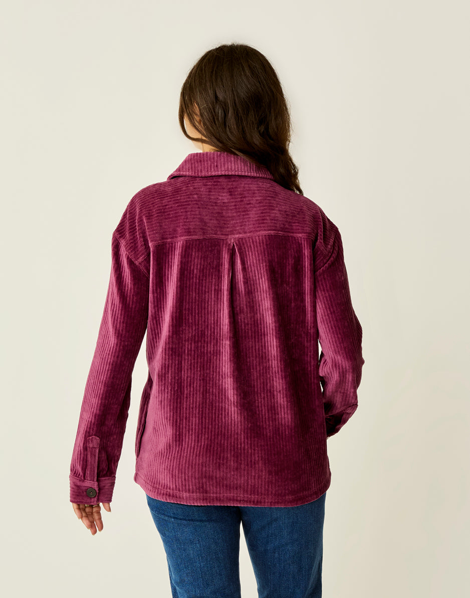 Choose your own adventure with this stretch cord shacket, sporting a shirttail hem, chest and side seam pockets as well as a button front closure. This is not our classic corduroy, but instead a slightly heavier weight, more lustrous and stretchy corduroy fabric that makes for the perfect layer.