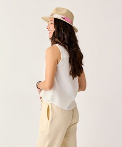 The Kayla echoes the carefree style and grace of summer itself thanks to its 100% organic cotton double gauze, V-neck, shirttail hem, embroidered placket, and acid wash, that gives each piece a unique appearance (excluding Cloud and Tulip).