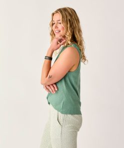 Muscle beach to beach bar the Larisa Hemp Tank lets the world know you’re a force to be reckoned with. A feminine muscle tank, with gathering at shoulder seams and bra friendly amenability.