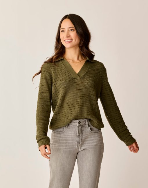 Carve Designs Women’s Tops Morgan Polo Sweater | Fir
