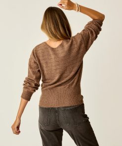 Imagine never putting on a sweater backwards again?! That’s right, the Ruth can be worn frontwards or backwards thanks to Carve’s space age technology. This is a “dinner sweater” with a split personality, made of our Fuzzy Yarn and featuring blouson sleeves.