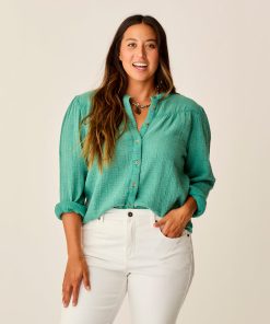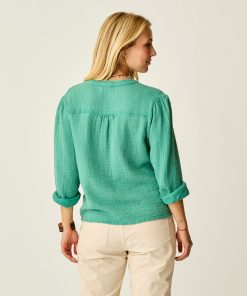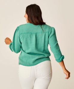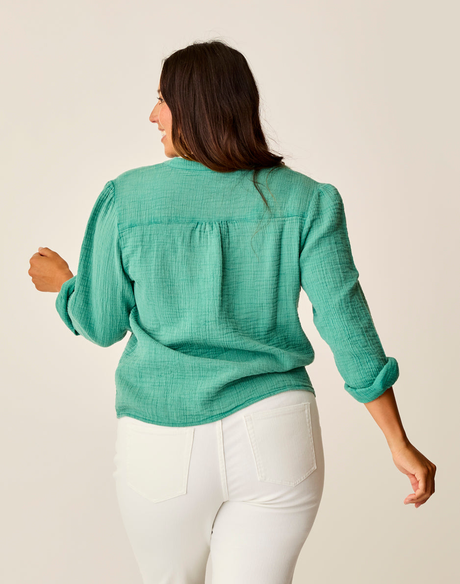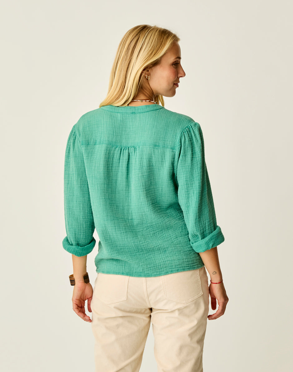 Lightweight as the regular Tatum Shirt, this Tatum doubles the gauze and the softness, thanks to its double gauze fabric. Gathered front yoke, volume sleeves and sleeve keyholes ring the bell, while doubling your pleasure.