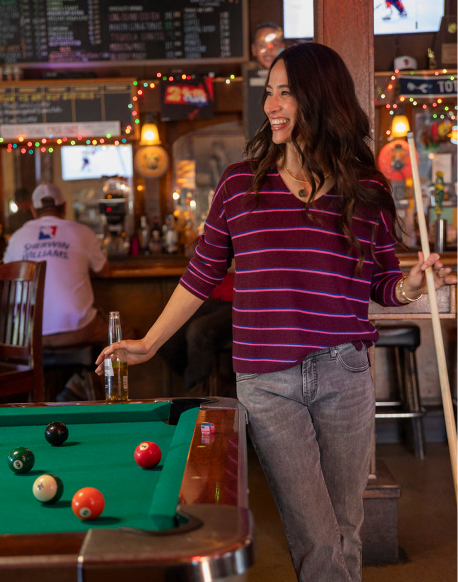 The Zella gracefully transitions between fall and winter thanks to her easy-going disposition, subtle back V-neck and lightweight Marino wool. She’s like that friend you can just take anywhere and always fits right in.
