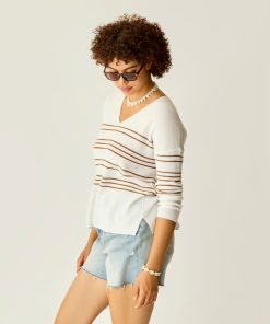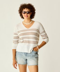 This lightweight 100% cotton sweater saunters into summer with cute, casual confidence. Her subtle back V-neck detail adds a little wink as you walk on by.